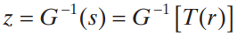 이제 r으로 z로 매핑하기 위해서, r으로 z를 구하는 식을 G의 역함수와 T(r)로 만들면,