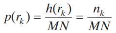 이미지 중 Intensity r_k의 개수 n_k를 histogram function h로 나타낸 것을 다음과 같이 나타낸다.
