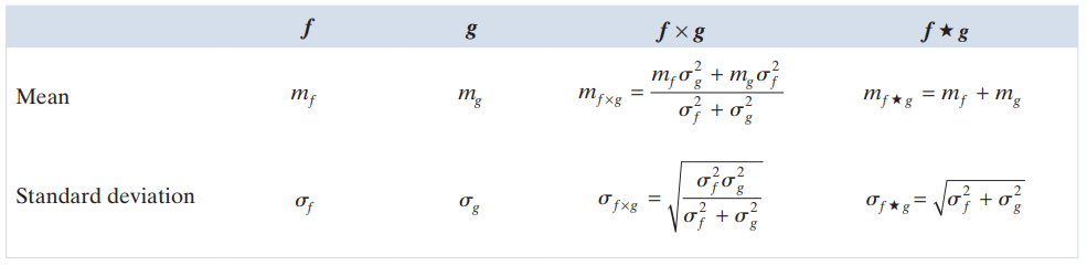 그리고 가우시안 커널엔 연산량을 줄이는 또 다른 특성이 존재한다. 가우시안 간의 convolution과 product의 결과가 가우시안임을 기반으로, 가우시안간의 연산을 다음과 같이 쉽게 계산할 수 있다.